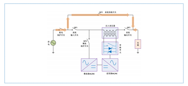HTAVC 在設備維護期間,先閉合系統旁路開關QF3, 使負載在維護期間保持正常工作,然后斷開 系統輸入開關 QF1 和系統輸出開關 QF2,HTAVC 從電網隔離,方便維護。