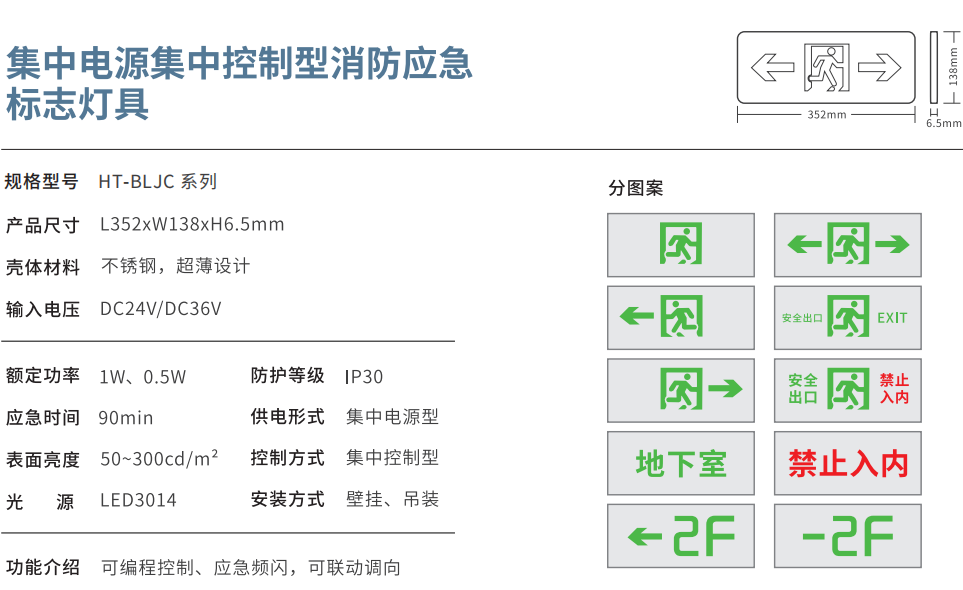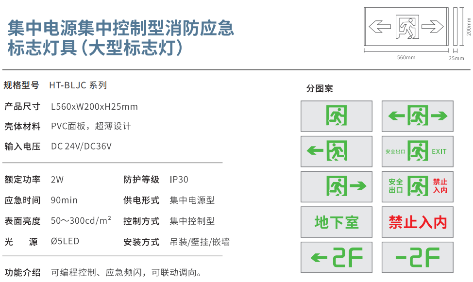 應急標志燈與應急照明燈均采用LED光源,節能環保;標志燈具可進入節電工作模式。